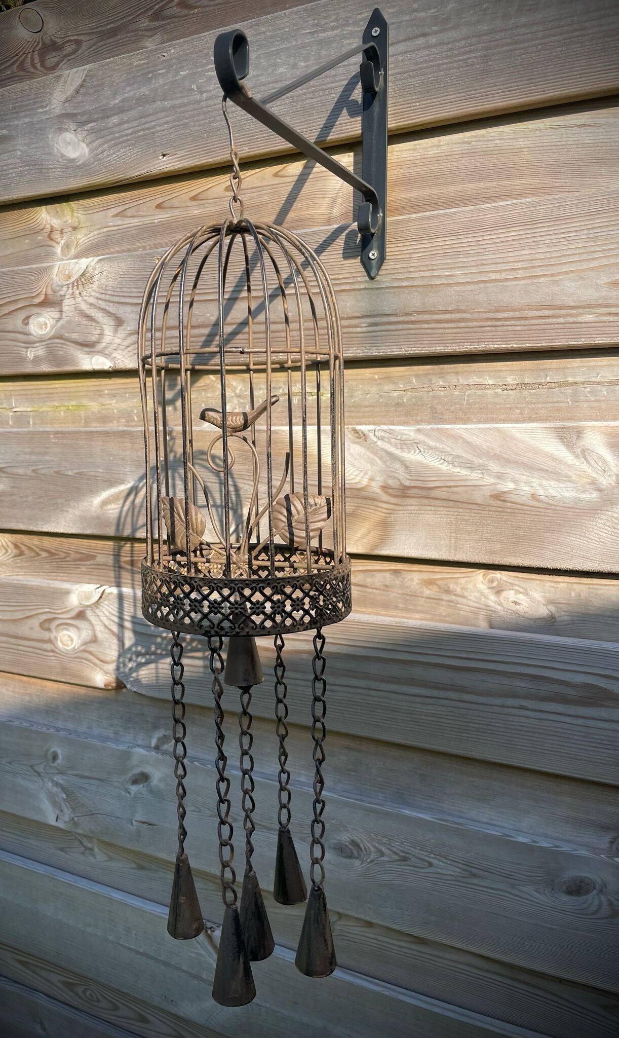 Prachtige metalen vogelkooi hanger met belletjes.Met de meegeleverde ketting is hij eenvoudig op te hangen.