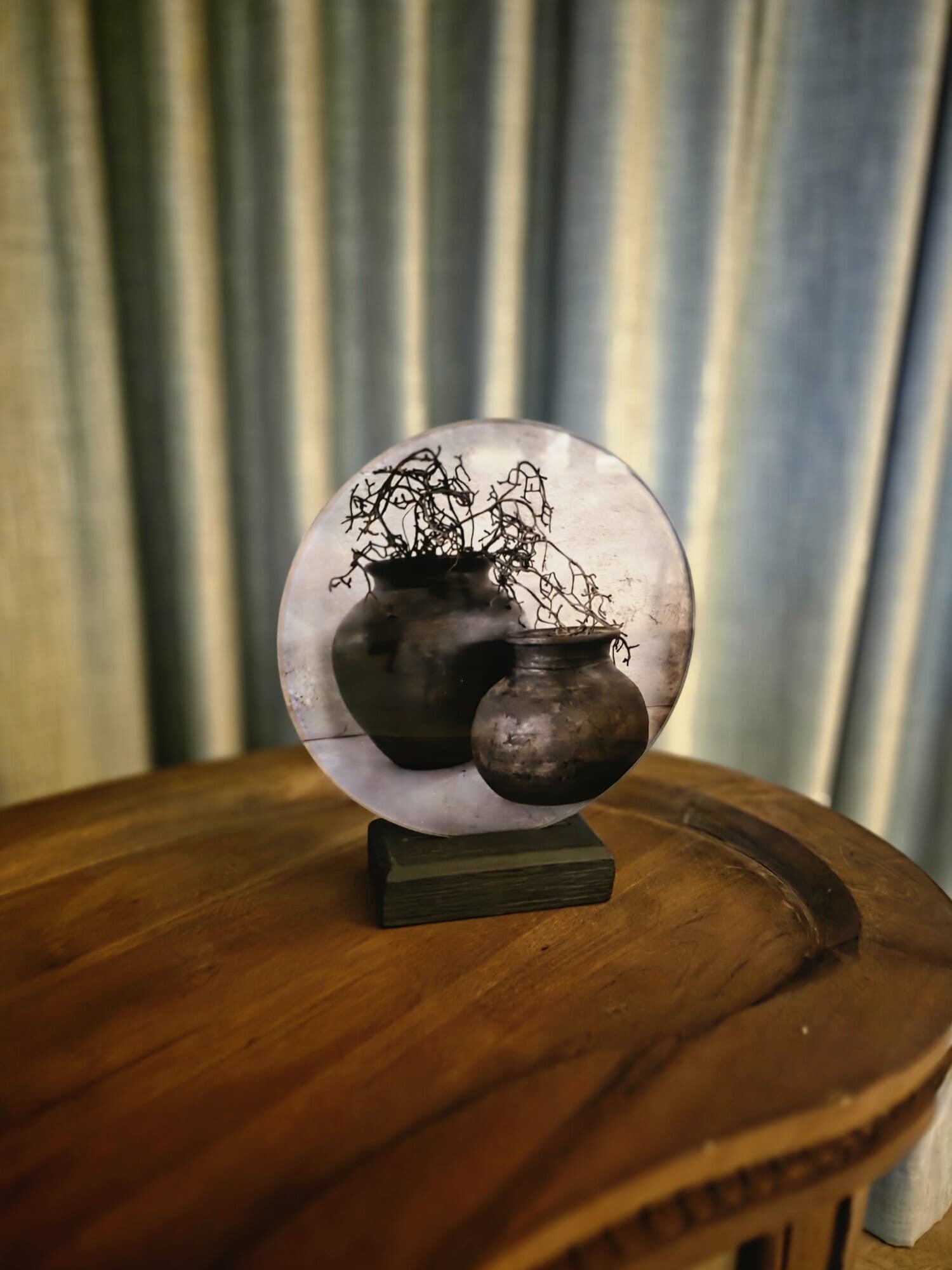 Glazen muurcirkel op standaard sobere kruiken.